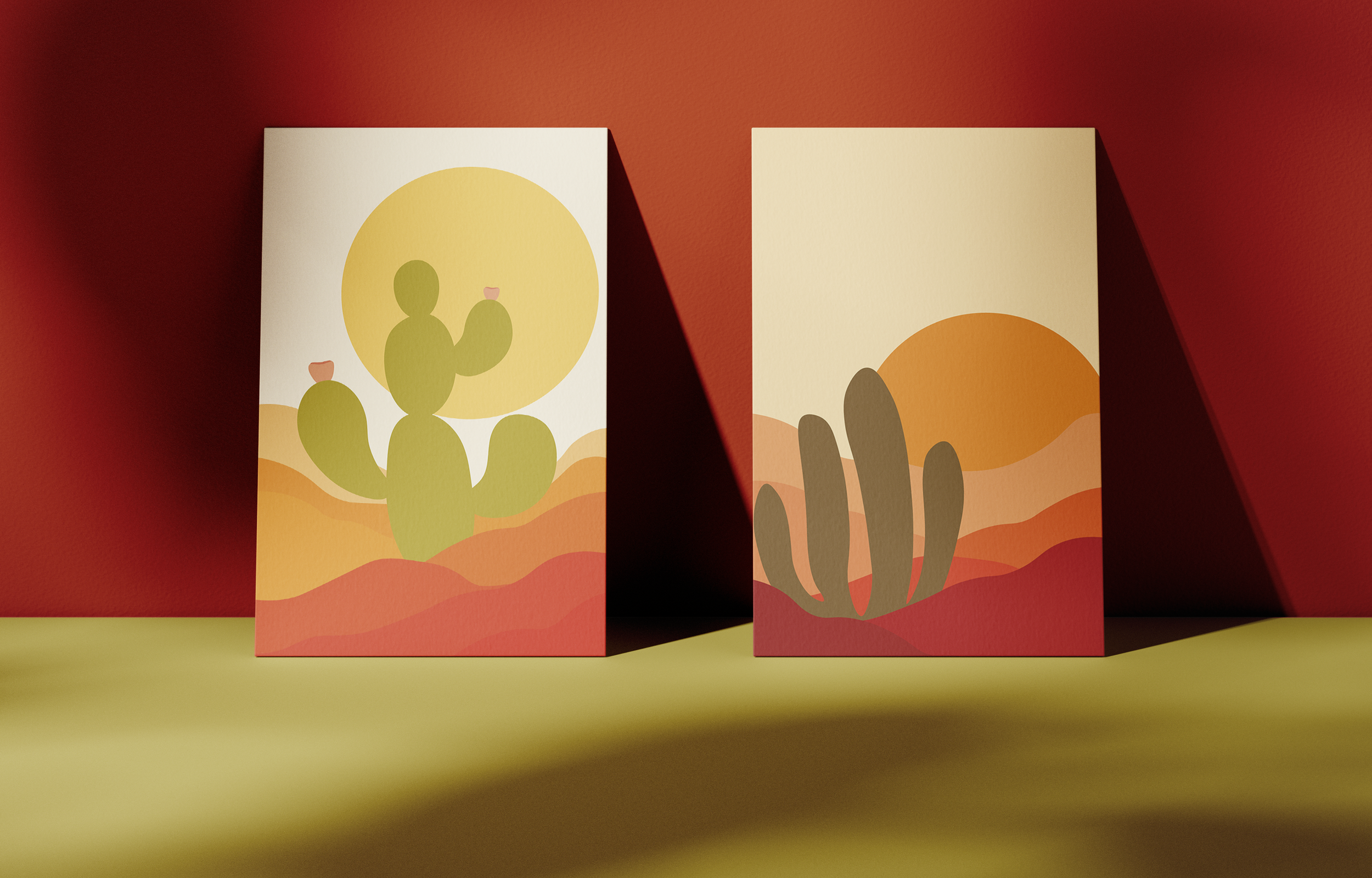 A series of illustrated postcards inspired by the quiet beauty and stillness of the desert. Each piece explores light, and composition to capture a sense of calm and atmosphere